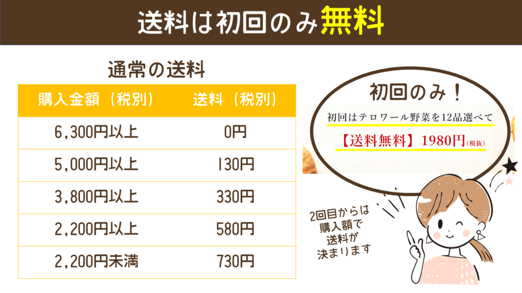 初回の12品食べ比べは「送料無料」でした。それ以降は、購入額ごとに決まった送料がかかります。