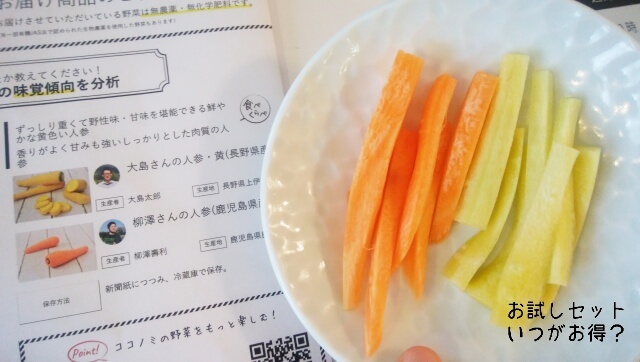 消費しやすそうな食材にしたいなぁと思ったので「トマト」「じゃがいも」「にんじん」の3種類を食べ比べで選びました。